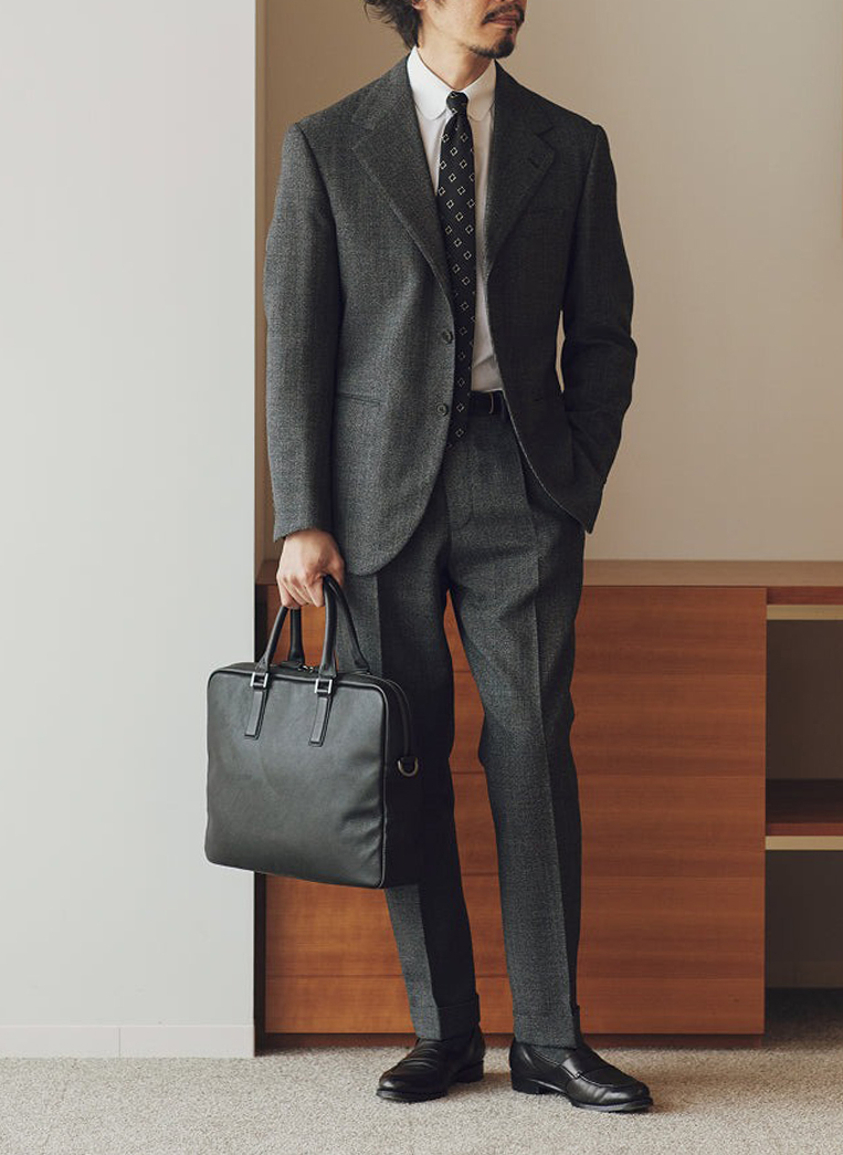 書類やPCも収納でき、信頼と清潔感を演出してくれるバッグです。