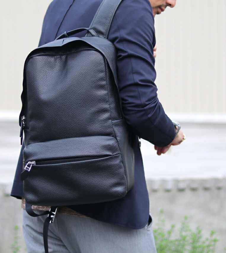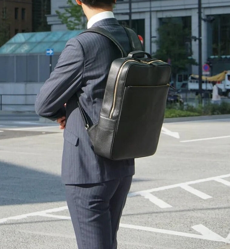 シンプルで上質な本革バックパックを選べば、むしろ大人の余裕を感じさせるバッグになります。